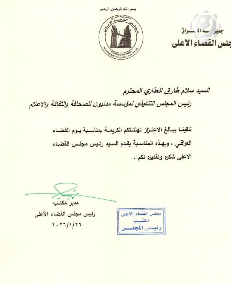تلقى صباح اليوم سلام طارق العذاري، رئيس المجلس التنفيذي لمؤسسة مدنيون للثقافة والإعلام، شك...