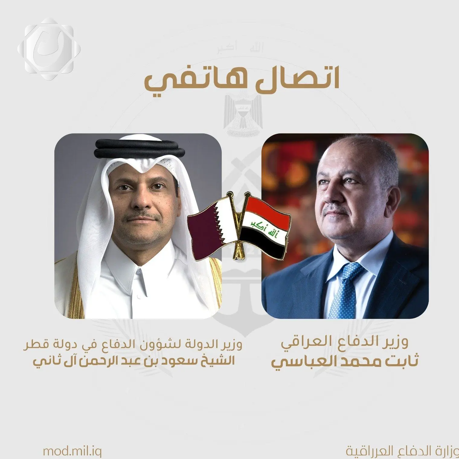 أكد وزير الدفاع، ثابت محمد العباسي، خلال اتصال هاتفي مع نظيره القطري، سعود بن عبد الرحمن آل ثاني، تضامن العراق مع قطر في مواجهة التحديات. وأوضح بيان لوزارة الدفاع أن العباسي اطمأن على الأوضاع في قطر عقب الضربة العسكرية التي تعرضت لها البلاد. وشدد على عمق الروابط الأخوية التي تجمع الشعبين الشقيقين، وأهمية وحدة الصف العربي في تعزيز الأمن والاستقرار. من جهته، أعرب وزير الدفاع القطري عن شكره لموقف العراق، مثمناً دعم بغداد وحرصها على أمن واستقرار المنطقة.