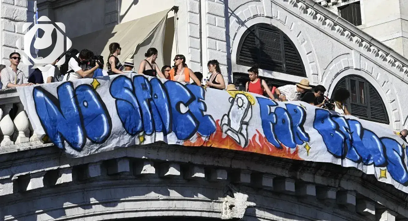 تظاهر نحو 500 شخص في مدينة البندقية الإيطالية احتجاجًا على إقامة مؤسس أمازون، جيف بيزوس، ح...