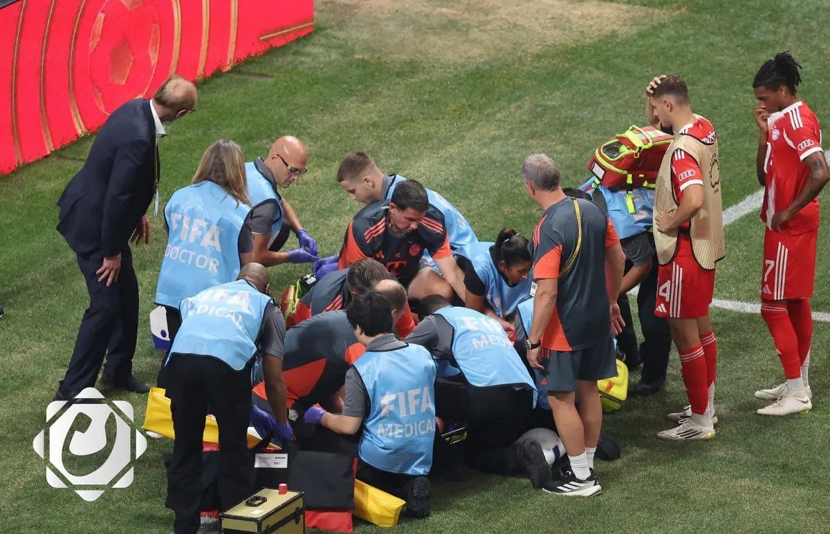 تعرض النجم الألماني الشاب جمال موسيالا، لاعب بايرن ميونخ، لإصابة خطيرة خلال مباراة فريقه أمام باريس سان جيرمان في ربع نهائي بطولة كأس العالم للأندية 2025. وقعت الإصابة في الدقيقة 45+2 نتيجة اصطدام قوي مع الحارس الإيطالي جيانلويجي دوناروما، مما أدى إلى كسر مضاعف في قدم موسيالا. وقد أظهرت اللقطات الحارس وهو يبكي بشدة بعد سقوط اللاعب على أرض الملعب، مما يعكس صدمته وتأثره بالإصابة. توقفت المباراة إثر هذه الإصابة، قبل أن ينهي الحكم الإنجليزي أنتوني تايلور الشوط الأول بالتعادل السلبي بين الفريقين على ملعب “مرسيدس بنز”.