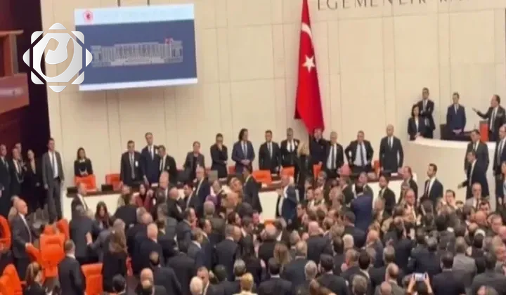 شهد البرلمان التركي حالة من الفوضى اليوم، بعد انتهاء مناقشات مشروع موازنة عام 2026، حيث تطورت الخلافات السياسية بين الكتل إلى اشتباكات بالأيدي داخل قاعة المجلس، مما أجبر رئيس البرلمان نورمان كورتولموش على رفع الجلسة.