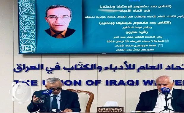 بغداد – أقام الاتحاد العام للأدباء والكتّاب في العراق جلسة حوارية تحت عنوان "التناص بعد مفهوم كرستيفا وباختين"، حيث قدم الناقد رشيد هارون محاضرة مميزة بحضور نخبة من الأدباء والمثقفين.